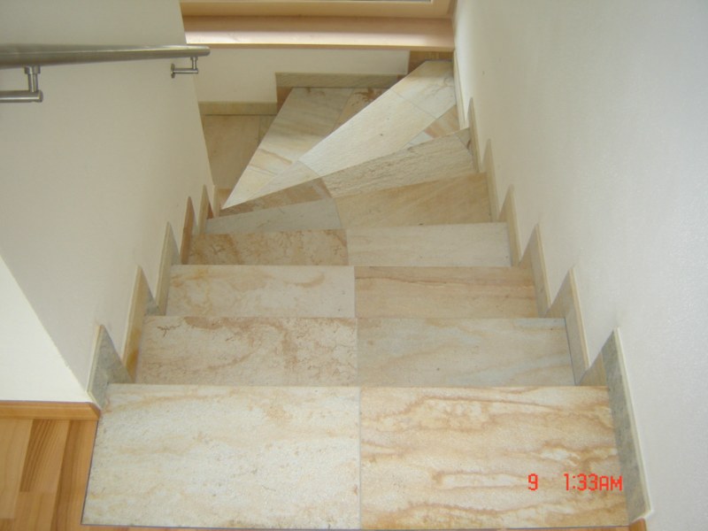 Individuelle Treppengestaltung aus Fliese und Naturstein.